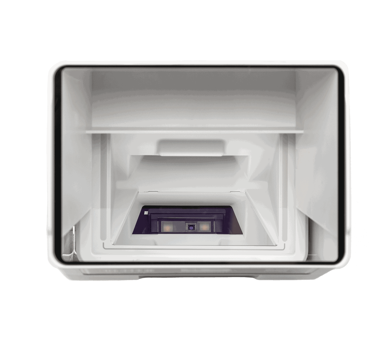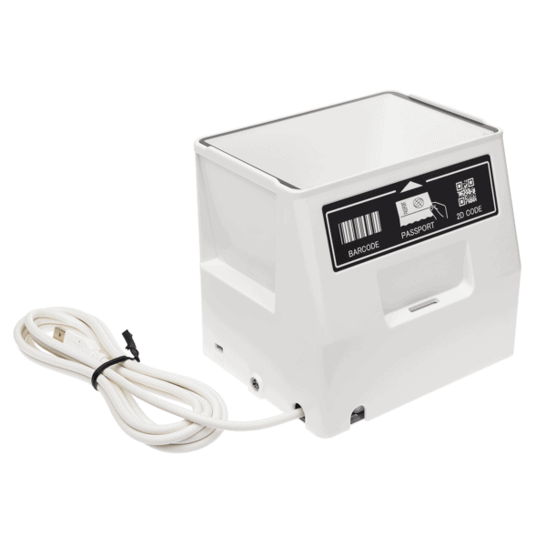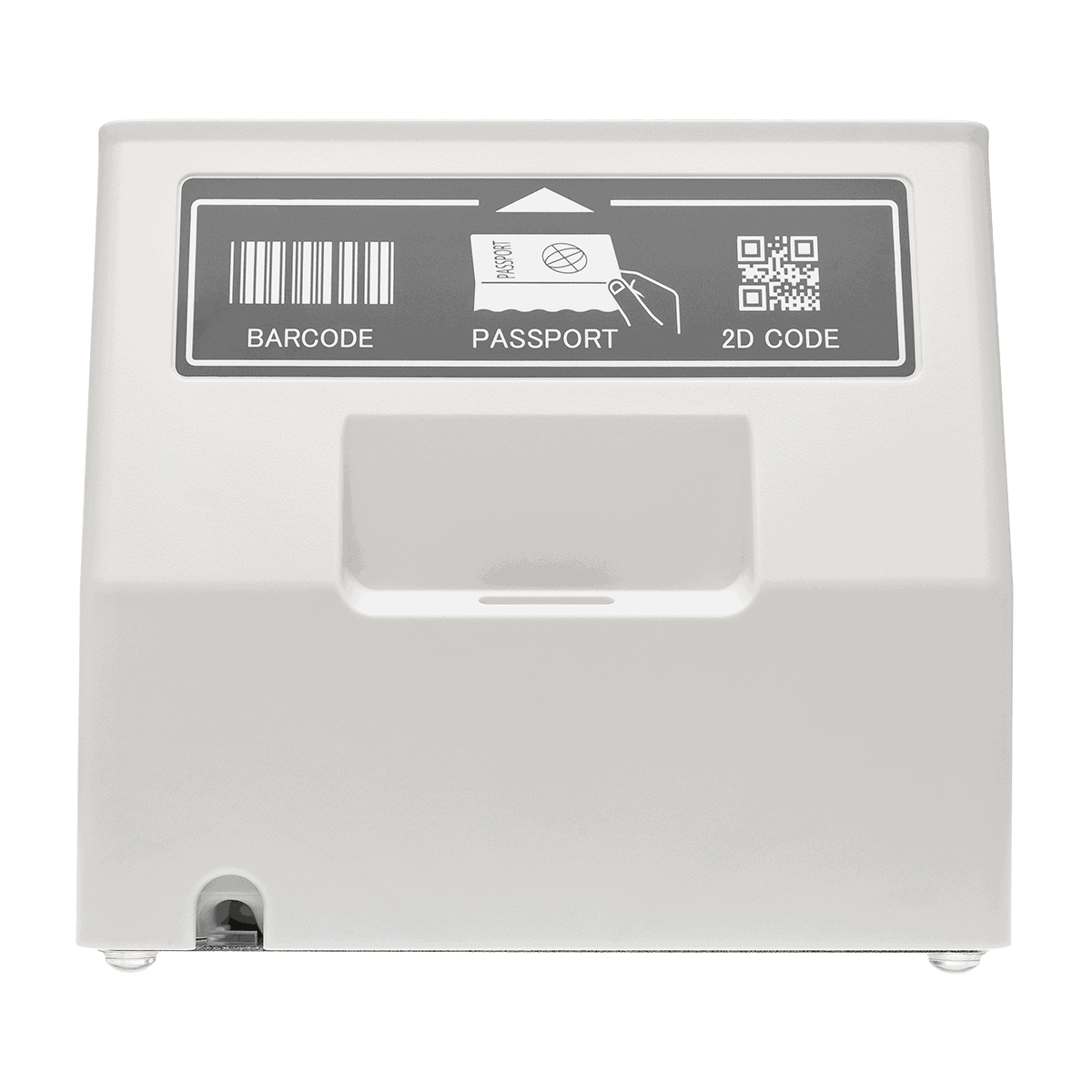 Passläsaren är en rundstrålande presentationsskanner, vilket innebär att skannern skannar passet från vilken riktning som helst. Detta möjliggör en enkel och effektiv transaktion eftersom streckkoderna skannas på vilket sätt du än håller dem ovanpå skannern.